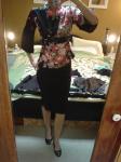 2-black pencil skirt, kimono style top, black peep toes