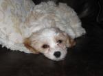 Here's my new puppy! She's a Cavachon (Cavalier King Charles Spaniel and Bichon Frise mix). I her! I named her Izzy, which I think matches her personality. She's a little bit wild!