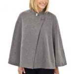 I think of a cape as working with more feminine outfits, so I'd wear it with a dress, especially a sheath, or a pencil skirt.