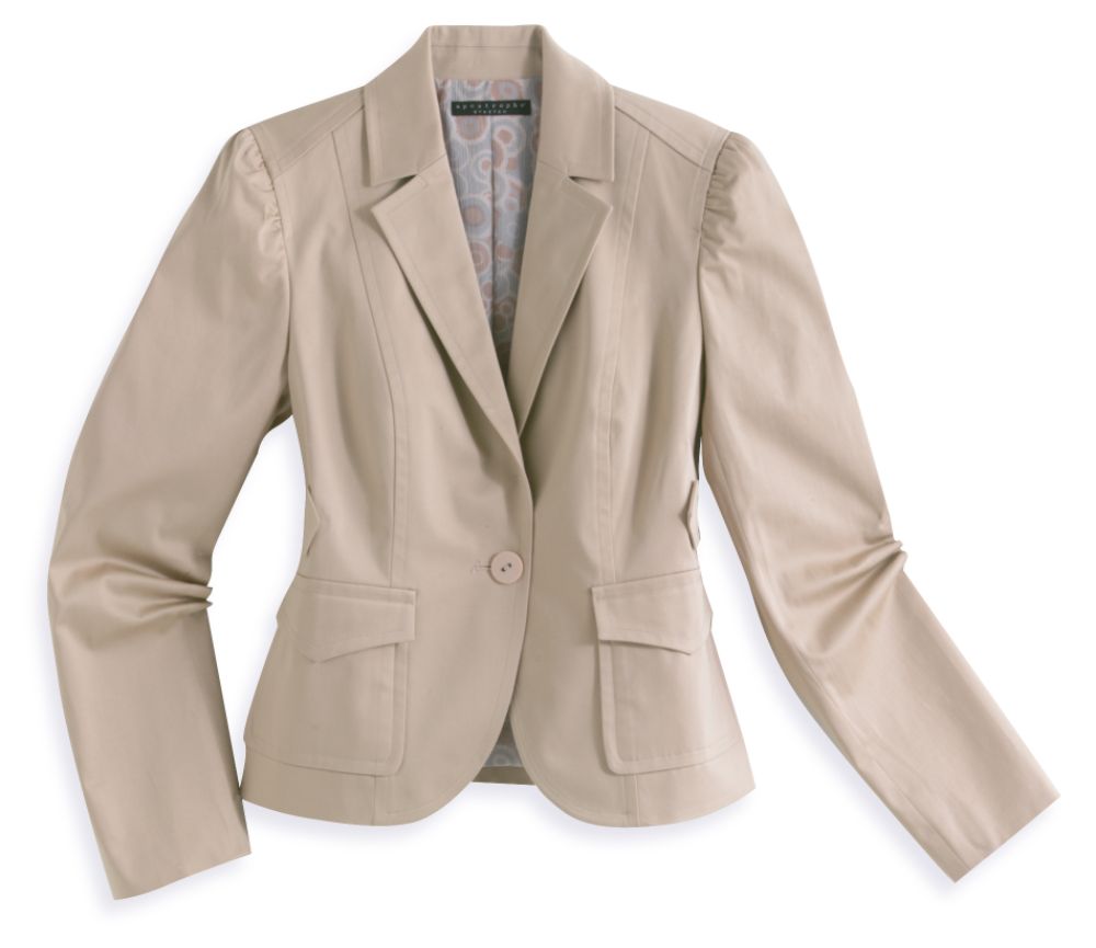 i think that the blazer would look great with a sheer gold blouse or a deep purple or redish purple top. the pink shoes would go great with a sleek black dress or a sleek dark green. like a very dark green.